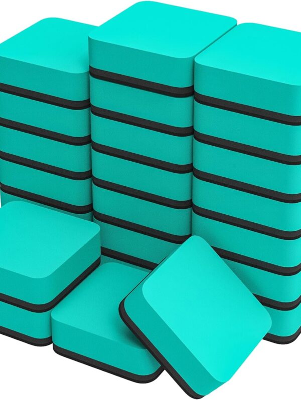 Dry Erase Erasers, 24 Pack Magnetic Whiteboard Erasers for Classroom, Mini Whiteboard Cleaning Pads Bulk, Chalkboard Wiper Teacher Supplies for School, Office, Home, Green, 2 x 2 x 0.6 Inch