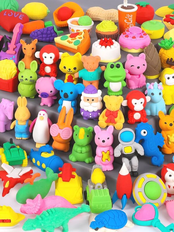 56Pcs 3D Food Erasers for Kids, All are Food Styles, Random Desktop Pets Toys Gifts, Mini Puzzle Classroom Rewards, Kids Party Favors Back to School Supplies