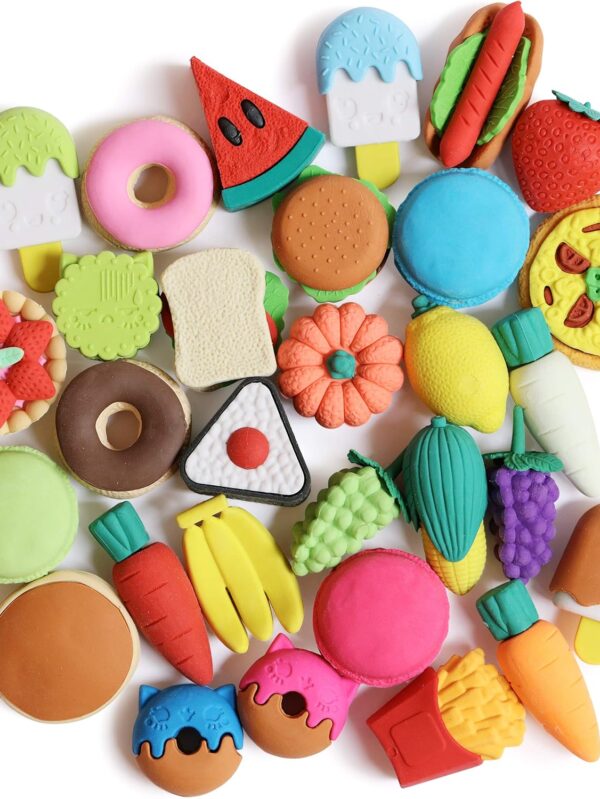 Mini Food Erasers for Kids, 30 pcs, 3D Mini Erasers for Kids, Non-Toxic & Safe for Children, No Smudge