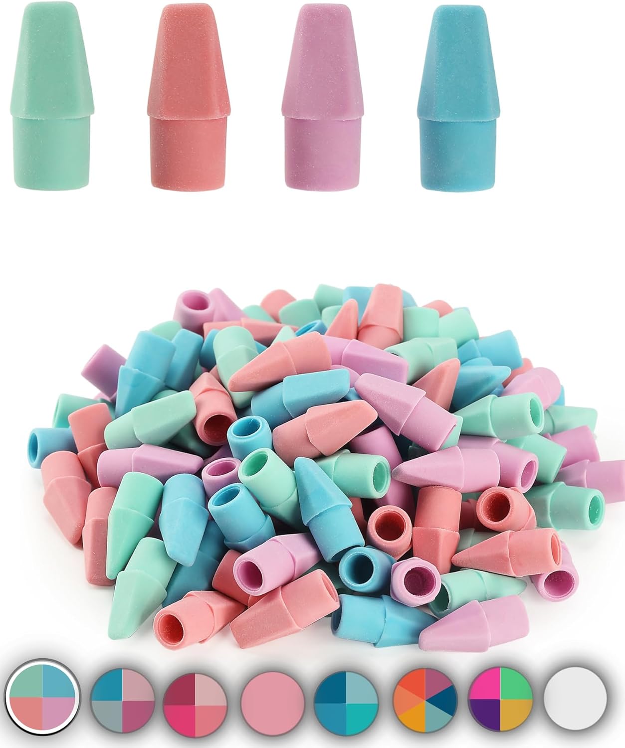 - Sharp corners and a flat face help erase details and large areas; Assorted colors erasers dress up the pencils, making writing and learning more fun